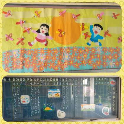 玄関の掲示です。可愛い子ども達が元気に笑っています。