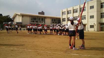 まだまだ暑い日が続いていますが、子どもたちは汗にまみれて運動会の練習をがんばっています。写真は棒引きの様子です。練習でも子どもたちは本気度は高く、開始の合図で全力で走っていました。
