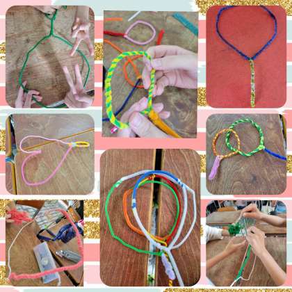 1年生と「シャボン玉交流」をするために、6年生の教室では、ハンガーやモール、毛糸で準備を進めています。