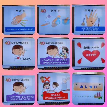 「けがのてあて」について、学習しました。