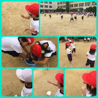 先週金曜日、1年生が水遊びをしました♪♪♪