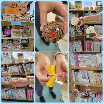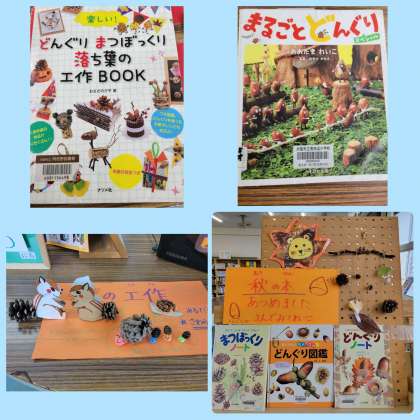 秋をテーマにどんぐりやまつぼっくり・・・けん玉、やじろべえ・・・。