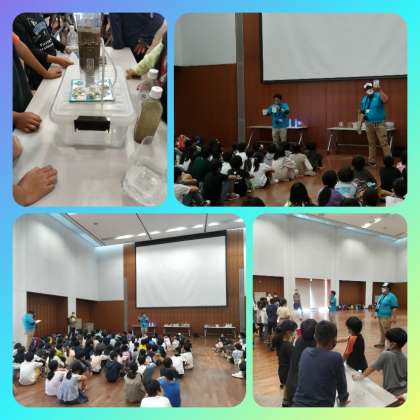 泥水や色のついた水が、装置を通すと透明になり、みんなは感動していました。