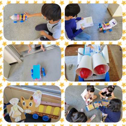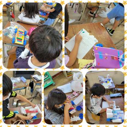 生活科で作ったおもちゃを使って、1年生を招待し、「おもちゃランド」をします。上手くおもちゃが動くように、何度も実験をしています。