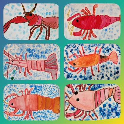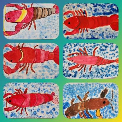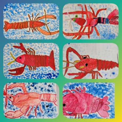 2年生の各教室では、「ザリガニ」の絵が掲示してあります。