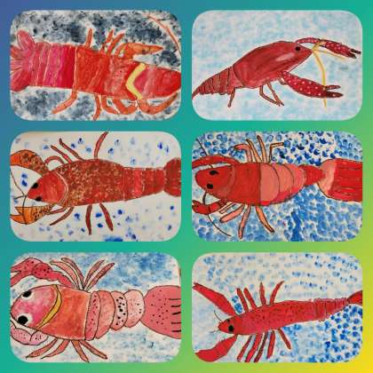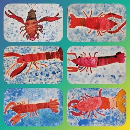 一生懸命に描いている「ザリガニ」、とても可愛いです。