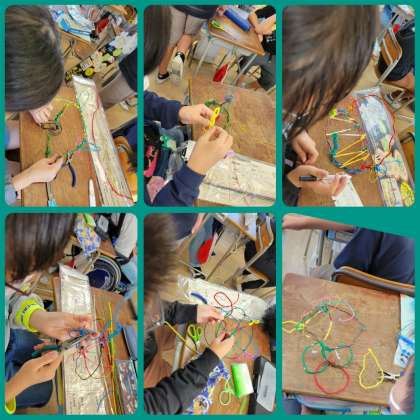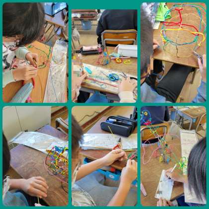 「立ち上がれ!ワイヤーアート」に取り組みました。作りたいものを描きながら、一生懸命です。