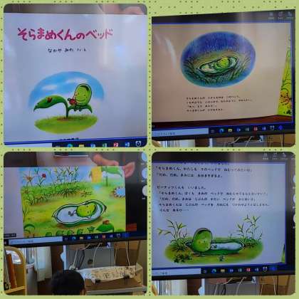 今日の児童集会は、図書委員会の子ども達による絵本の読み聞かせでした。みんな楽しそうに見ていました。