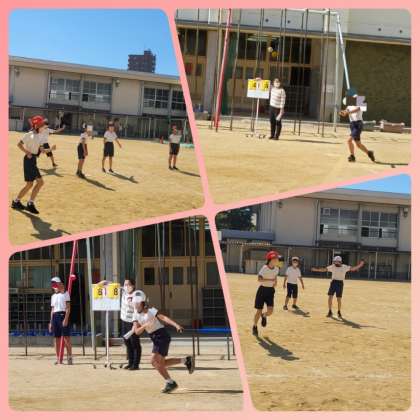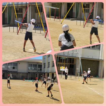 5年生の体育の授業の様子です。ソフトボールの教材に取り組んでいます。打って、走って、取って・・・。元気いっぱいです。