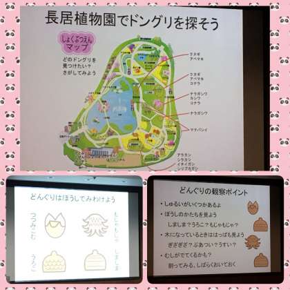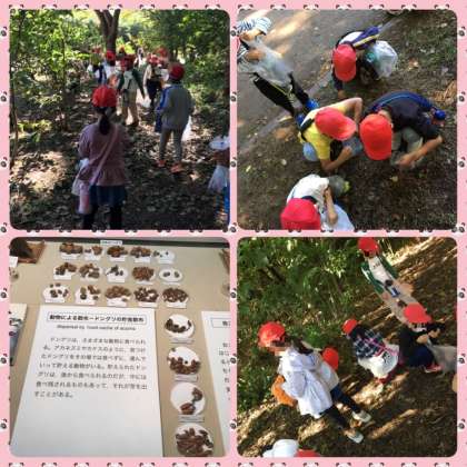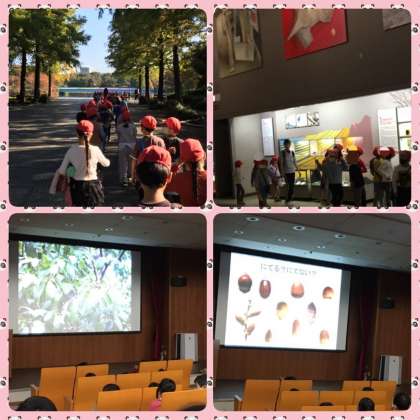 植物園に出て、芝生広場まで移動し、どんぐり拾いをしました。