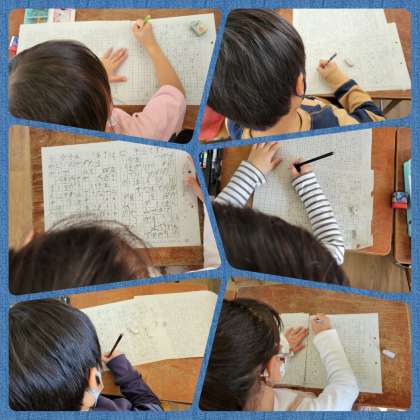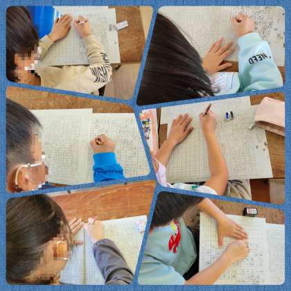 お昼の「ぐんぐんタイム」では、視写にも取り組んでいます。みんないい姿勢で書いています。