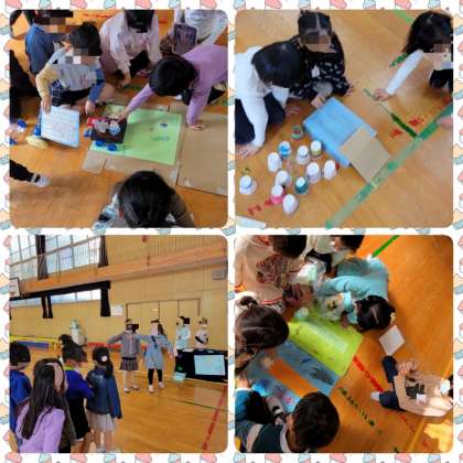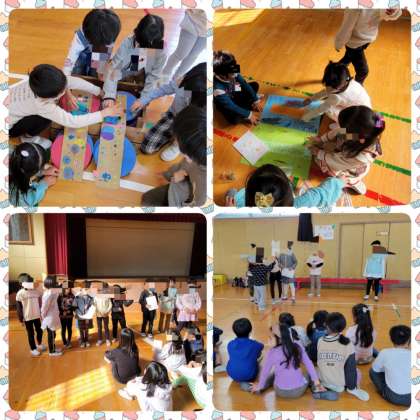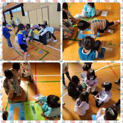 遊び方を紹介する2年生、しっかり聞いている1年生。微笑ましい様子です。