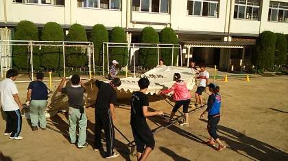 各学年での競技や演技の練習も力が入っていますが、運動会全体に関わる練習や準備も始まっています。今日は、開閉会式の練習や、本部となるテントの設営をしました。