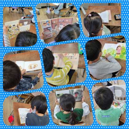 月曜日のぐんぐんタイムは、全学年「読書」です。一斉に本を読んでいます。