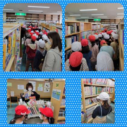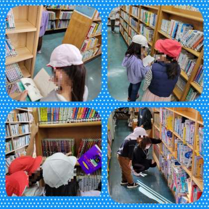 見学をした後、一人一冊ずつ本を借りました。借りた本は、後日学校へ届きます。本を探すときに図書館に方に本の場所を聞いている子どももいました。みんなとても熱心に見学していました。