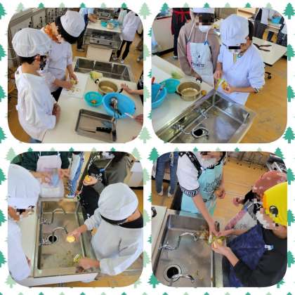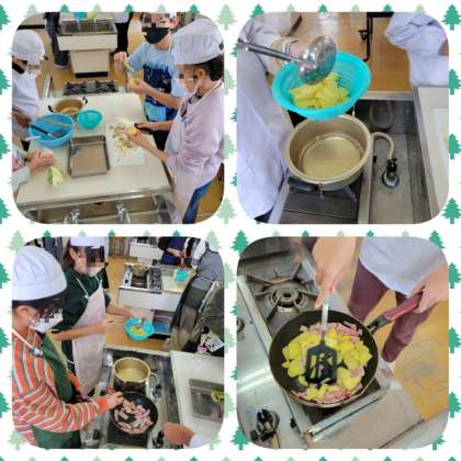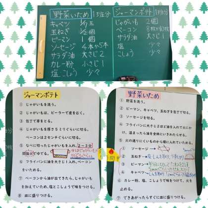 調理実習で、野菜炒めとジャーマンポテトを作りました。
