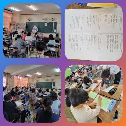 中学校の先生による出前授業がありました。1組は国語、2組は理科でした。