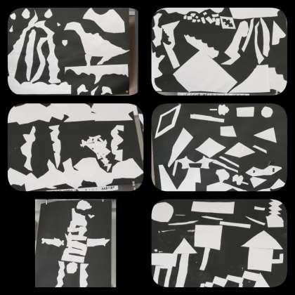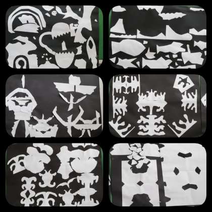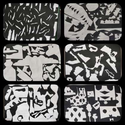 切った紙を並べ置き直すうちに、おもしろい世界が見えてきました。