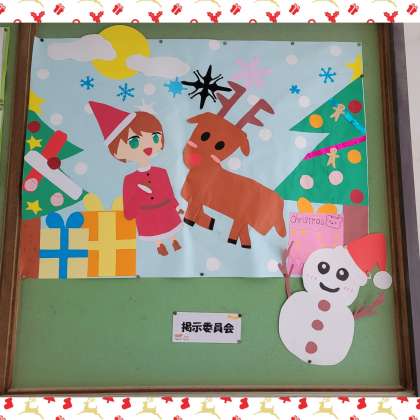 掲示委員会の掲示板です。12月の可愛らしい掲示です。
