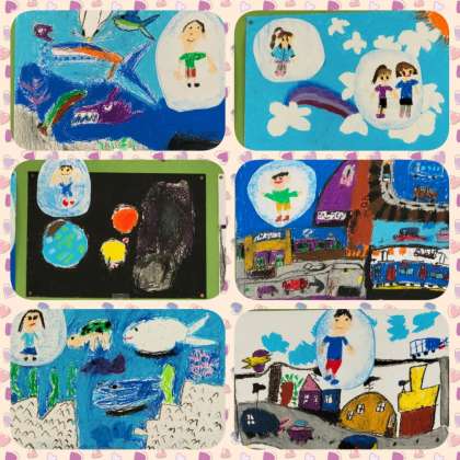 みんなの夢がしゃぼん玉になってとんでいきます。