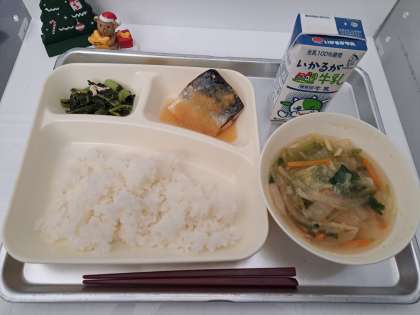 塩で下味をつけたさばを焼き、だいこんおろし、みりん、うすくちしょうゆ、ゆす果汁で作ったさっぱりしたタレをかけた献立です。骨のあるさばも多かったのですが、低学年の子どもたちも一生懸命食べてくれて、残食はほとんどありませんでした!