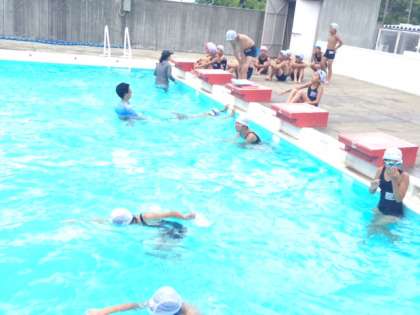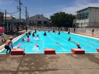 7月27日(月)28日(火)に水泳の特別練習がありました。4年生から6年生で、「自分の課題解決のために参加を希望する子ども」を対象に実施しました。46名の子どもたちを13名の先生が指導していました。先生に「腕がきれいに伸びてるよ」「バタ足上手」という声をかけてもらったり、足や腕の動きがよりよくなるようにサポートしてもらったりして、子どもたちもそれに応えようとがんばっていました。子どもたちの笑顔からは達成感が伝わってきました。