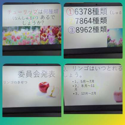 今日の児童集会は、栽培委員会の発表でした。