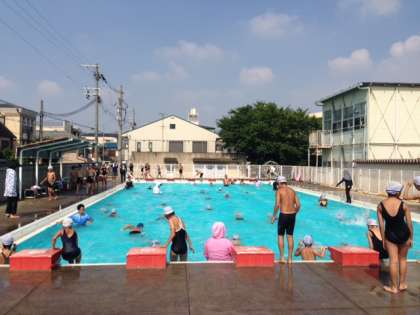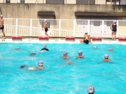 夏休みのプール指導は今日が最終日でした。夏休みの初めはお天気が悪く2回中止となりましたが、それ以外は晴天に恵まれ、多くの子どもたちが自分の課題克服に向け、水に親しんでいました。先生は毎回7〜8名の当番が決まっているのですが、いつも13〜14名の先生が指導にあたっていました。子どもたちの泳力を少しでも伸ばしてあげたいという先生方の熱い思いが伝わってきました。