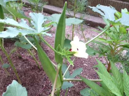 上の左の写真の花は何の花でしょう?ネバネバが特徴の“オクラ”の花です。ちょっと意外な感じがしませんか?1年生の教室前学習園で見られます。普段私たちが食べている野菜の花について調べてみるのも楽しいですね。より野菜が身近なものとして感じられ、一層おいしくいただけるかもしれません。