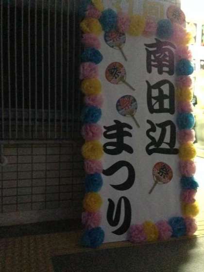 8日(土)〜9日(日)にかけて、本校運動場で、南田辺地域活動協議会主催の『南田辺まつり』が開催されています。開始前に突然の雷雨があり、電気系統にトラブルが発生したそうですが、スタッフの皆さんの懸命なご尽力のおかげで無事開催されました。「去年は二日間とも雨やったけどやってねえ。それでも2,000人以上の参加があったよ。みんな楽しみにしてるから、今年はそれ以上参加があるんと違うかなあ。」と連合町会長(地域活動協議会長)さんがおっしゃっていました。
