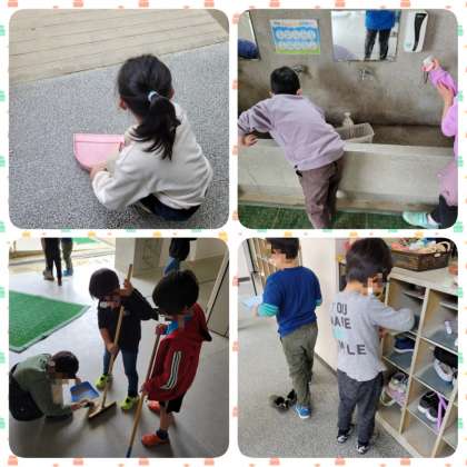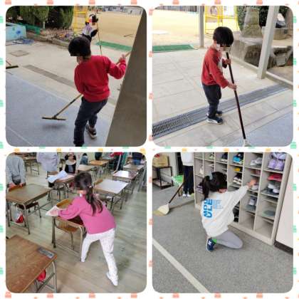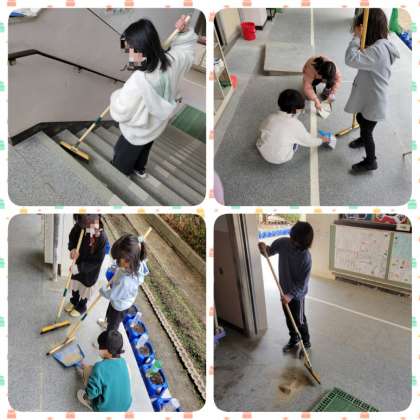 1階の廊下と階段の掃除の様子です。一生懸命取り組んでいました。