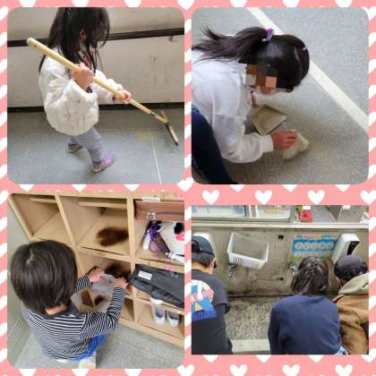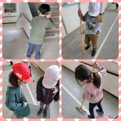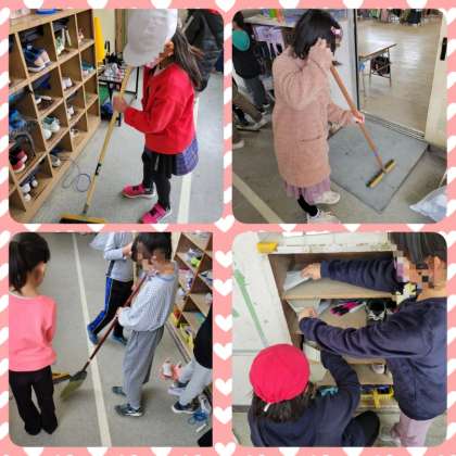 2階の掃除時間の様子です。美化委員会の発表通り、正しく丁寧に掃除をしていました。