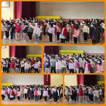 明日の卒業を祝う会のリハーサルの様子です。1年生は、お祝いの言葉と歌(勇気100パーセント)の練習をしていました。