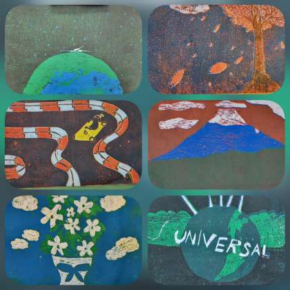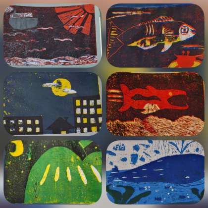 色の重なりを考えながら彫り進めたり、自分のイメージに合う色の組み合わせを考えながら刷ったりすることに頑張って取り組んでいました。