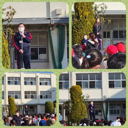 「学校を安全に過ごすために」「美化のために自分ができること」のお話でした。