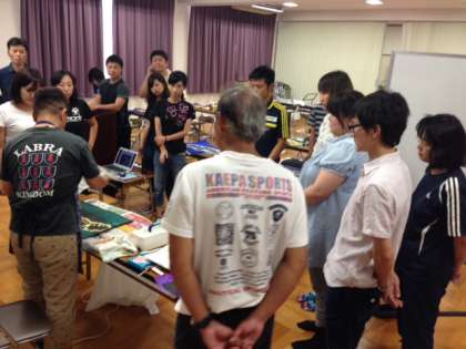 先生が講師となって、それぞれ得意なことを伝え合い、授業力を高め合う研修会もします。今日は、図工科の研修で「銀河鉄道の夜」という題材で造形活動の研修会をしました。