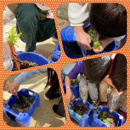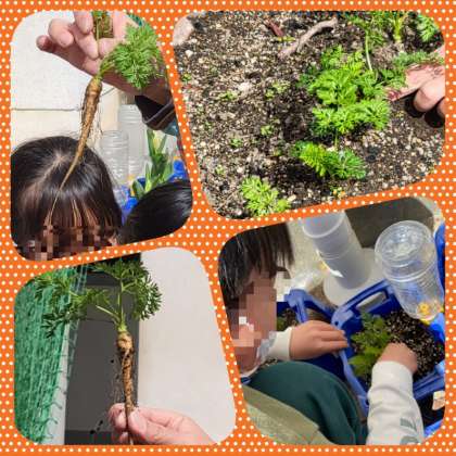 ミニキャロットの収穫をしました。可愛いミニキャロットを見て、子ども達は嬉しそうでした。