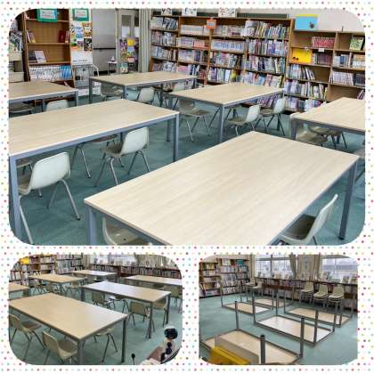 図書室に、ピカピカの新しい机も届きました。ますます明るい素敵な図書室になりそうです。