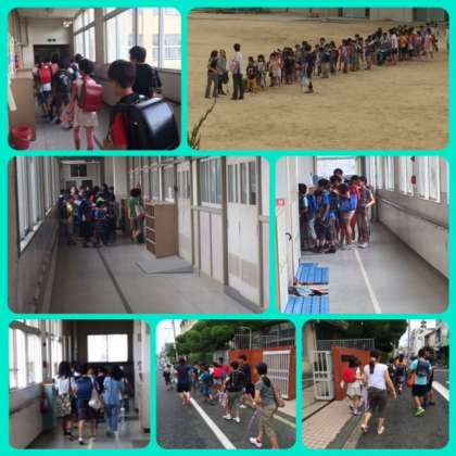 6年生が手分けして同じ班の子どもたちを安全に誘導し、下校して行きました。