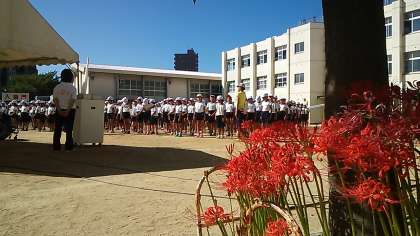 9月も半ばを過ぎ、もうすぐ10月を迎えようとしています。毎年この時期になると、校庭の木々の足元には、ヒガンバナが朱をそえています。