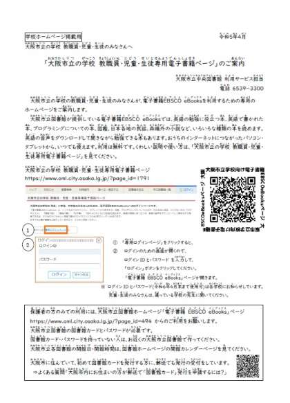 大阪市立の学校 教職員・児童・生徒専用電子書籍ページのご案内
