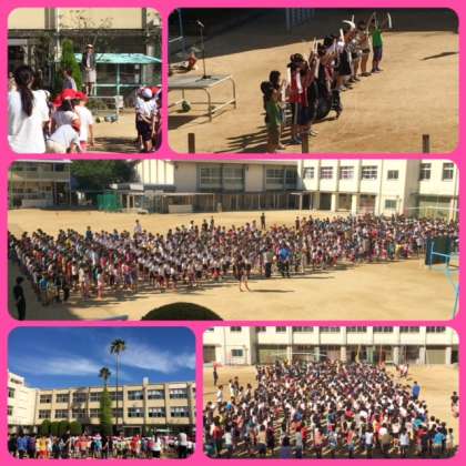 日本の小・中学校で行われている運動会が今世界で注目を集めているそうです。なぜでしょう?アメリカ、イギリス、ドイツ、韓国、中国などの国々にも運動会と似たものはあるそうですが、個人競技が中心の運動会で、運動能力を競うだけのものが多いそうです。でも、日本の運動会には、ダンスや、組立体操などのみんなで一つのものを仕上げる種目や、大玉運び、綱引きなどみんなで力を合わせて勝敗を競うプログラムがあります。その様子を見ていると子どもたちが楽しそうで、みんなで協力している姿がすばらしいということで世界の人々が注目しているのだそうです。実際に日本の運動会をまねて学校で運動会をするようになった国もあるということです。タイやカンボジアという国を知っていますか?そこには日本からボランティアが行って日本式の運動会の仕方を指導しているそうです。運動会をやるようになり、子どもたちに人を思いやる心が育った、友達と協力して何かをするという雰囲気が育ってきたという感想が届いています。さて、みなさん、運動会の練習ができるのもあと7日間です。互いを思いやりながら、みんなで協力して素晴らしい運動会になるようにしましょう。