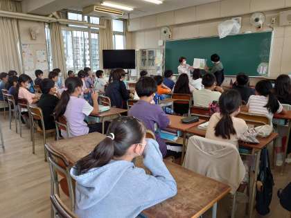 おはなしらんどの皆さんによるおはなし会が、今年もスタートしました。昨日は6年生の教室で「平和」についての絵本を読んでもらいました。