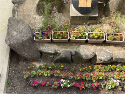 玄関前に作った花壇は、チョウの食草園になっています。