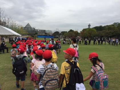 今日から10月。学校の1年間の後半が始まりました。秋の遠足第一弾、1年生が天王寺動物園へ行きました。今日リニュアルオープンしたばかりの天王寺公園のエントランスエリア(“てんしば”という愛称だそうです)の芝生の感触を楽しみながら天王寺動物園に到着。人気NO1のトラ、NO2のライオン、NO3のゾウはもちろんカバ、サイ、キリン、シマウマ、コアラ、オオカミ、コンドルなどたくさんの動物を見ることができました。ペンギンたちはきちんと整列して子どもたちを迎えてくれました。昼食時には子どもたちが、お家の方の力作であるパンダやクマのおにぎりを見せてくれました。子どもたち一人ひとり、どの動物が心に残ったでしょうか?