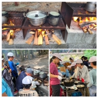 山登りの後は班で協力してカレー作りをしました。