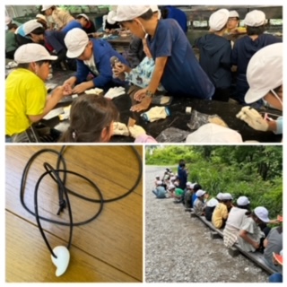 カレーを食べた後はみんなで勾玉作りをしたり、スイカを食べたりしました。