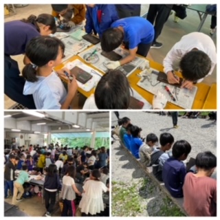 焼き板に絵付けをしました。みんな思いおもいの文字や絵や模様をペンでかいていました。