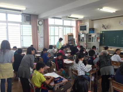 1日(木)に6年生全体で、詩吟について教えていただきました。それをもとに昨日は6年1組と4組の子どもたちがいよいよ自分で作品をつくりました。6名の方が指導に来てくださり、丁寧に教えてくださいました。子どもたちは5年生の時にはぐくみネットのご協力を得て、俳句作りをご指導いただいています。そのとき培った力を発揮し、まずは事前に俳句づくり。その俳句に節をつけて詩吟の雰囲気に浸ることができました。来週は2組と3組の子どもたちが詩吟に挑戦します。