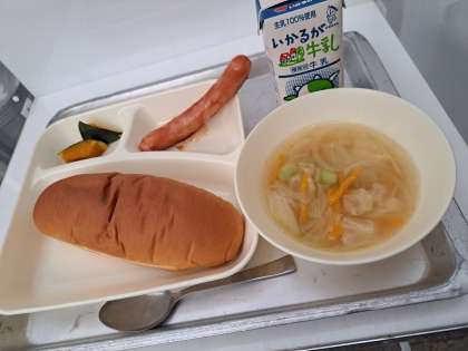 砂糖、ケチャップ、トンカツソース、ウスターソースを合わせてとろみをつけたソースを、茹でたウインナーにからませています。子どもたちに好評な献立です。
